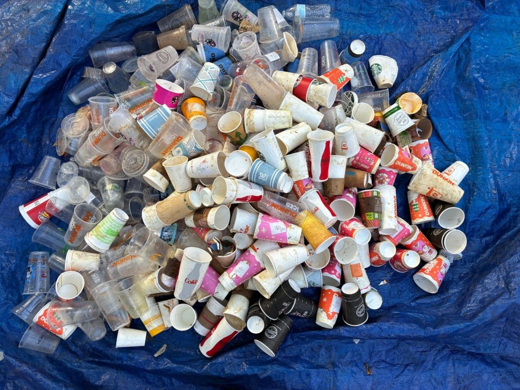 Above is all of the cups from our 24-hour downtown JP Waste Audit. With this snapshot, we estimate that JP is using about 500,000 disposable coffee cups a year.